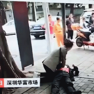 一名過路女子和一名男子接力為他實(shí)施心肺復(fù)蘇,直到急救人員趕來。