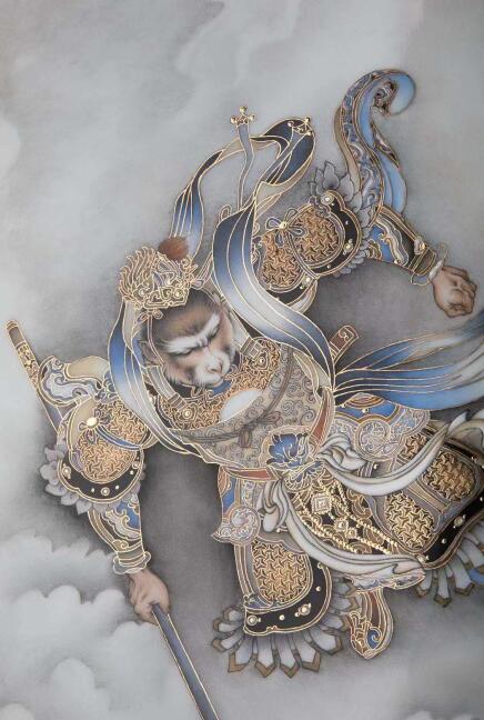 顧堅(jiān)瓷板畫(huà)代表作再現(xiàn)了齊天大圣大鬧天宮的經(jīng)典畫(huà)面(展覽方 供圖)