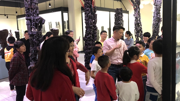 也許是被熱情的笑容和鼓舞所感染,天真活潑的小朋友們一到現(xiàn)場便與非洲大哥哥大姐姐們迅速的打成一片,毫無距離感。在非洲哥哥姐姐們的鼓聲引領(lǐng)下,同學(xué)們首先來到非洲文化博物館,由于大家都是第一次接觸非洲藝術(shù)品,哇哇哇的贊嘆聲此起彼伏,博物館工作人員瞬間被大家緊緊包圍,對(duì)各種藝術(shù)品提出了無數(shù)個(gè)五花八門的問題,真正成了“十萬個(gè)為什么”“案發(fā)現(xiàn)場”?!榜R賽人為什么住牛糞房子啊?”“木頭為什么是黑色的啊”“坐了酋長椅是不是就可以做酋長了?”……由于同學(xué)們第一次這么近距離接觸非洲文化,實(shí)在是太好奇太熱情,與各種藝術(shù)品親密接觸拍照、坐酋長椅體驗(yàn)“做酋長”的感覺、甚至工作人員也“網(wǎng)開一面”讓大家騎在大象和獅子木雕上盡情玩耍,導(dǎo)致原本計(jì)劃半小時(shí)的參觀時(shí)間足足一個(gè)半小時(shí)才結(jié)束。