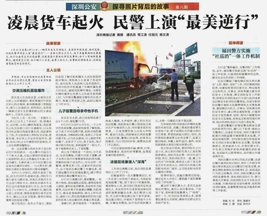 ★★景田派出所巡邏民警卓明浪面對(duì)熊熊燃燒的貨車和隨時(shí)可能發(fā)生的爆炸,無所畏懼、反應(yīng)快速、處置專業(yè),把損失降為最低。