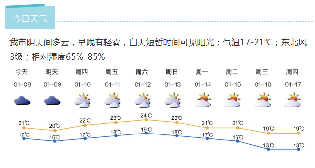 早晚能見度稍差,出行注意交通安全。