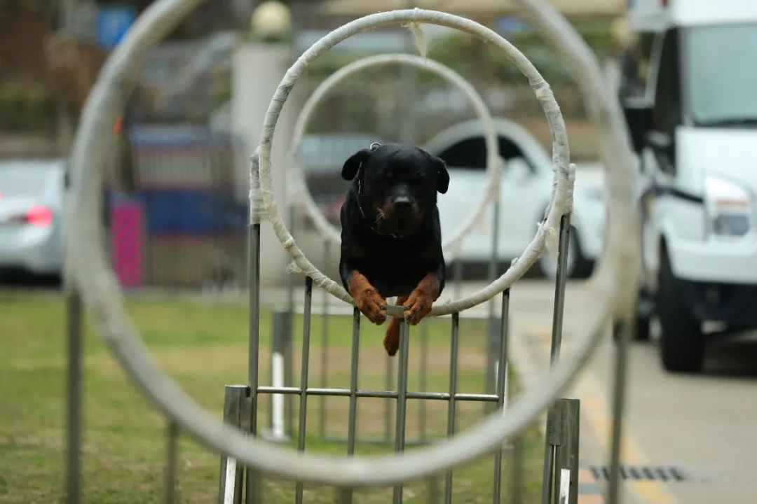 記得第一次和主人出任務(wù)是在會(huì)展中心,人很多,本犬的心都撲騰撲騰地跳,主人看出了我的緊張,通過(guò)撫摸來(lái)幫我緩解。小的時(shí)候,羨慕哥哥們都是威風(fēng)凜凜的警犬,直到自己成為一名警犬,才知道背后的艱辛。我不僅要克服心中的緊張感,還要每天參加四次訓(xùn)練,不斷鞏固警務(wù)技能。訓(xùn)練中受點(diǎn)小傷也是常事,但本“男子犬”不懼困難和挑戰(zhàn)!