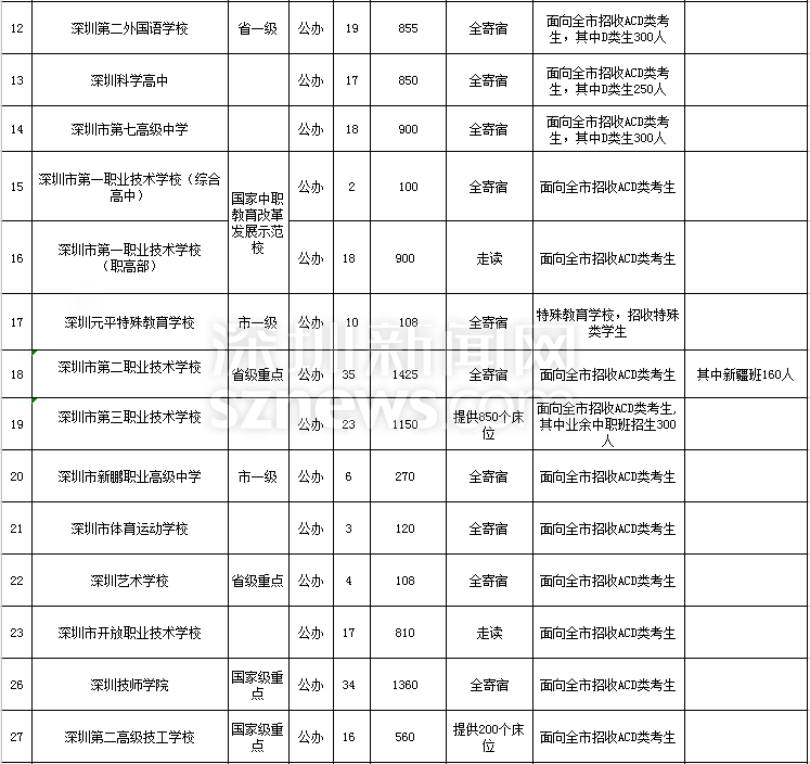 深圳市2018年高中階段學(xué)校招生計(jì)劃表