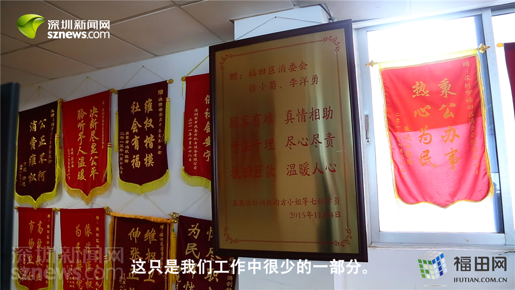 錦旗只代表福田區(qū)消委會工作中很少的一部分,12個工作人員每年處理上萬宗投訴。