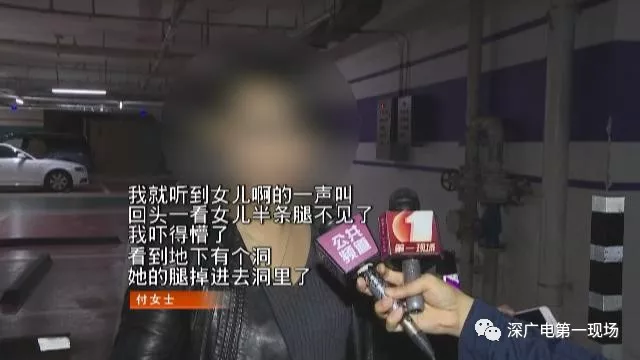當(dāng)時(shí)停車場(chǎng)燈光昏暗,付女士的女兒剛準(zhǔn)備從后排左側(cè)的車門上車,就一腳踏進(jìn)了這個(gè)坑里。