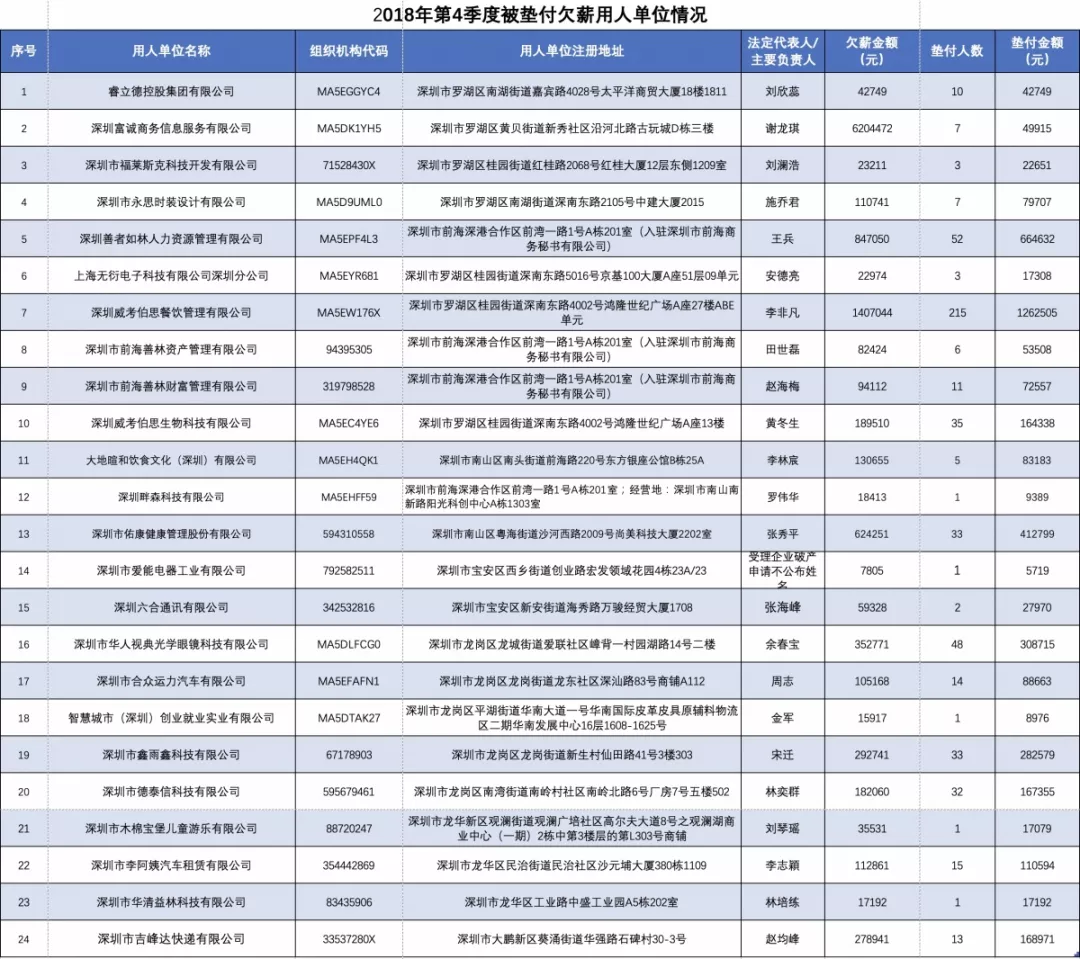 一企業(yè)欠薪高達(dá)140多萬(wàn)!深圳曝光第4季度24家被墊付欠薪企業(yè)