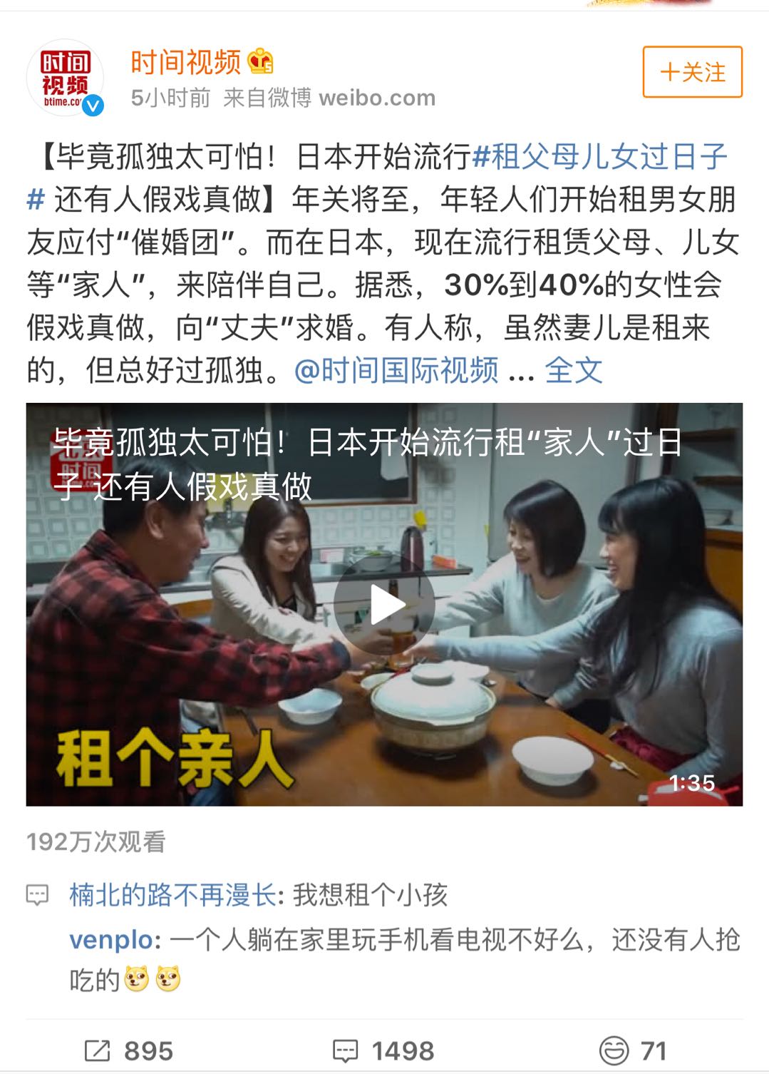 最近,日本流行租父母兒女過(guò)日子了