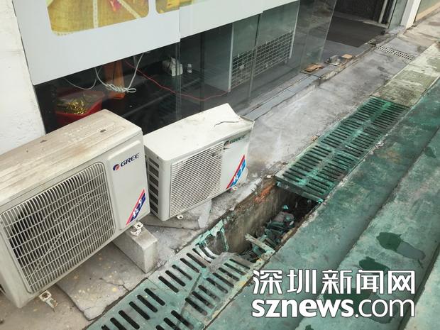 餐飲店老板告訴記者,當時肇事車輛逆行直接沖下8級臺階,巨大的沖擊力將店門前的地板撞得粉碎,門口的空調(diào)機箱也受損嚴重。