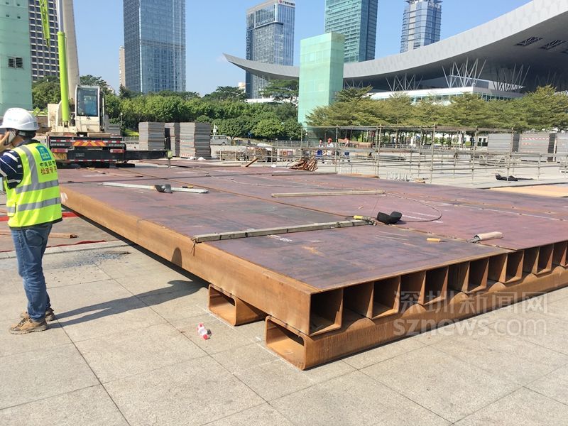 在市民中心南廣場(chǎng)搭建春晚深圳分會(huì)場(chǎng)舞臺(tái),借助深圳燈光秀為背景,確實(shí)是一個(gè)絕佳的創(chuàng)意。要實(shí)現(xiàn)創(chuàng)意,搭建舞臺(tái)是關(guān)鍵一役。去過(guò)南廣場(chǎng)看燈光秀的深圳人應(yīng)該知道,南廣場(chǎng)中間位置正好是地下車庫(kù)的玻璃采光棚,春晚主舞臺(tái)剛好就位于廣場(chǎng)玻璃采光棚的正上方。玻璃材質(zhì)決定了它無(wú)法承受上部集中荷載,需要事先改變傳力路徑或?qū)?chǎng)地下部梁板進(jìn)行加固處理,謝衛(wèi)兵和同事發(fā)現(xiàn),研究舞臺(tái)局部可操作性的加固方案迫在眉睫。