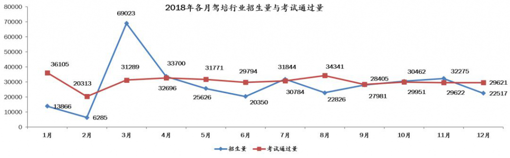 2018年全年行業(yè)累計(jì)招生33.7萬(wàn)人,考試通過(guò)量共36.5萬(wàn)人,累計(jì)考試通過(guò)量與招生量比值為108.3%。