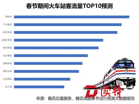 鄭州作為中國鐵路的中心,當(dāng)仁不讓地成為全國最熱門的火車站。而廣州南站、杭州東站、上海虹橋站預(yù)計分列二、三、四位,基本集中在人流密集的一線城市及區(qū)域性中心城市。