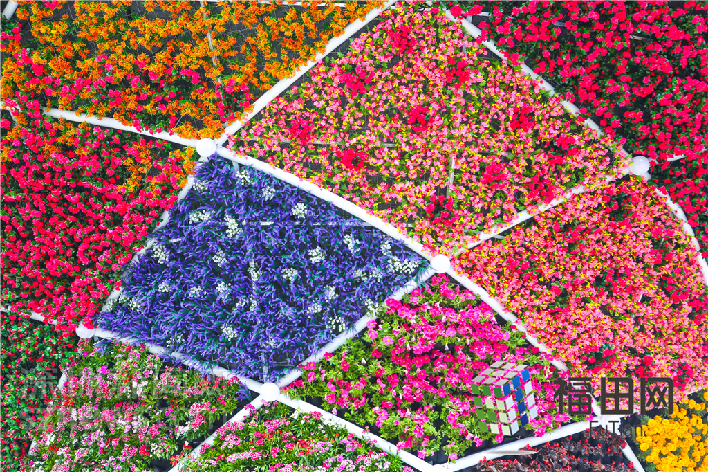 據(jù)工作人員介紹,整個花市門樓一共由129800株花卉打造而成,外形以三朵盛開的大花為主造型,花柱為上大下小的喇叭狀,頂部相連,底部成品字狀分布,花柱以交錯的鋼結(jié)構(gòu)形成菱形的塊狀花紋,而每一塊菱形圖案中又嵌以五彩斑斕的花朵為裝飾物,整個門樓的色彩以紅色為主色調(diào),混合以粉色,紫色,白色,黃色等多個顏色的混合及點綴,形成豐富多彩的視覺感官,紅色的主色調(diào)運用,亦很好的呼應(yīng)了春節(jié)喜慶祥和的節(jié)日氛圍。