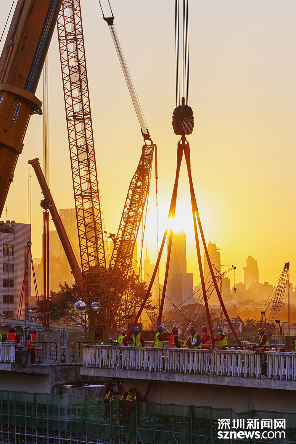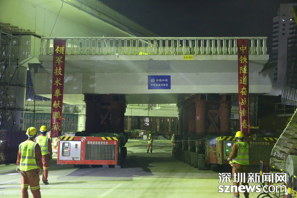 深圳新聞網(wǎng)2019年2月3日訊(記者 黃賢娟 趙穎致 黃婉婷 胡志方 林婉婷)與日漸冷清下來的街道商鋪不同,春節(jié)前夕的黃木崗立交仍是一片繁忙景象。這是2月2日傍晚,數(shù)百名身穿橙黃馬甲的工人正在忙著將立交橋切割分離。平板車、模塊車往來穿梭,將一塊塊拆卸下來的橋體陸續(xù)運(yùn)走。夕陽(yáng)西下,橙黃色工服反射出點(diǎn)點(diǎn)熒光,成為安靜的城市中獨(dú)特的點(diǎn)綴。