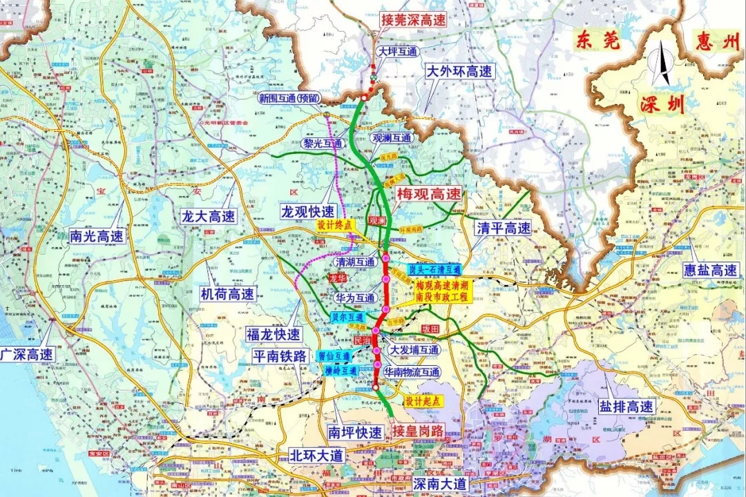南起原梅林主線收費(fèi)站南端,北至石清大道與清湖立交之間,與原北線擴(kuò)建工程起點(diǎn)對接,道路全長約7.975公里。
