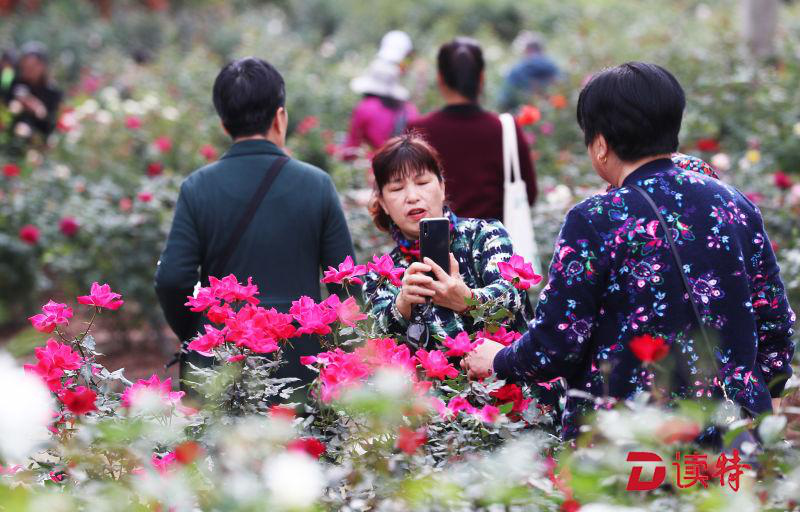 忘情月季開出詩情"花意"舉家賞花人氣旺
