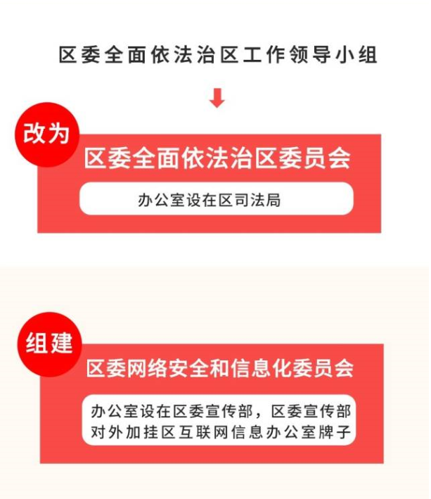 區(qū)委高度重視機構(gòu)改革工作,認真貫徹落實黨的十九大和十九屆二中、三中全會精神,深入領會習近平總書記關于深化黨和國家機構(gòu)改革的重要論述,及時研究部署龍華區(qū)機構(gòu)改革工作,專門成立了區(qū)委深化機構(gòu)改革工作領導小組。