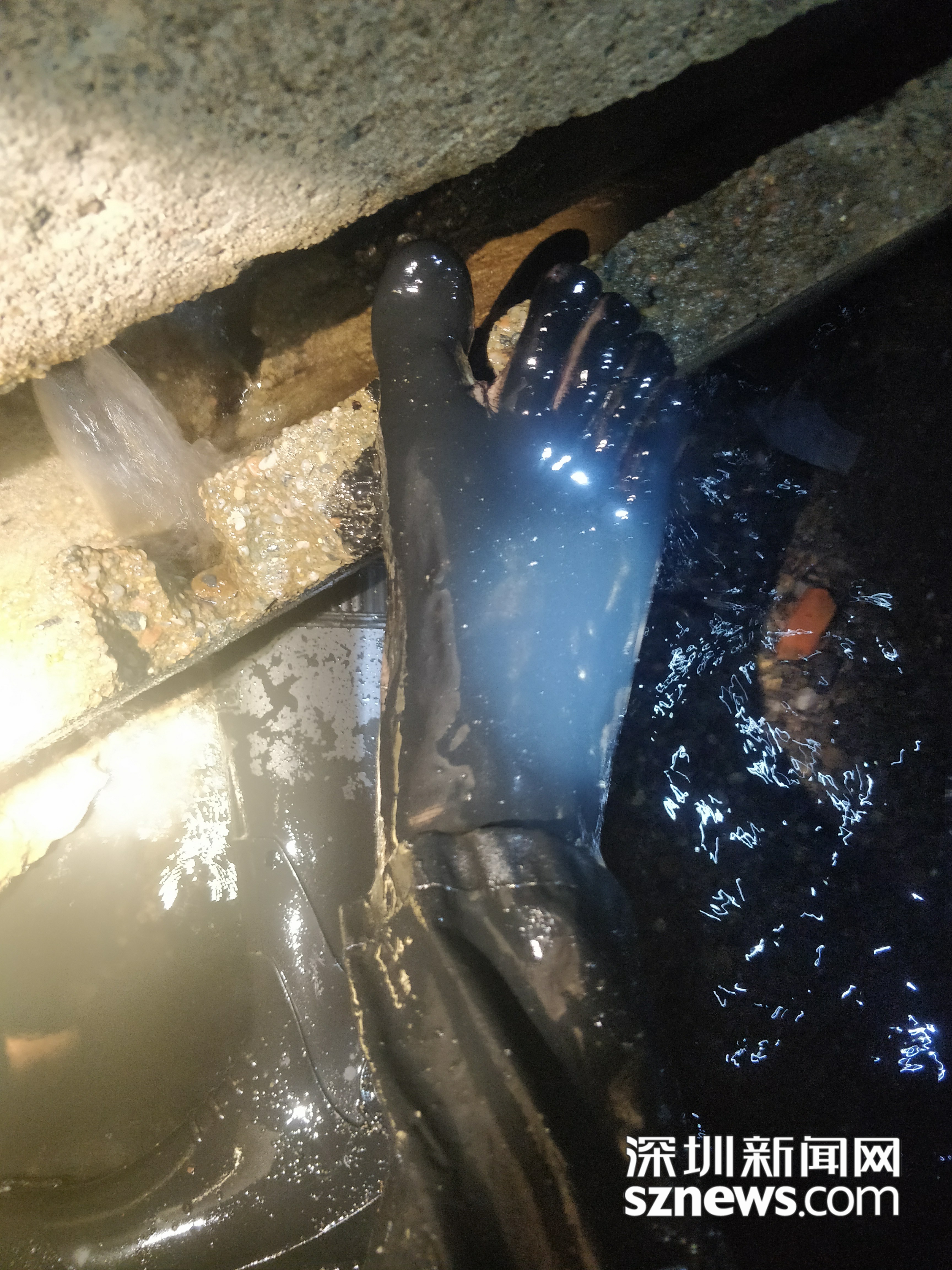 王經(jīng)波在檢查暗渠清疏工作時不慎踩入淤泥