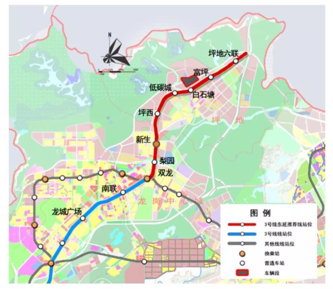 3號(hào)線(xiàn)東延線(xiàn)位于深圳市龍崗區(qū)境內(nèi),向東北方向延伸。線(xiàn)路全長(zhǎng)約9.4公里,其中地上線(xiàn)約2.0公里,地下線(xiàn)約7.4公里。