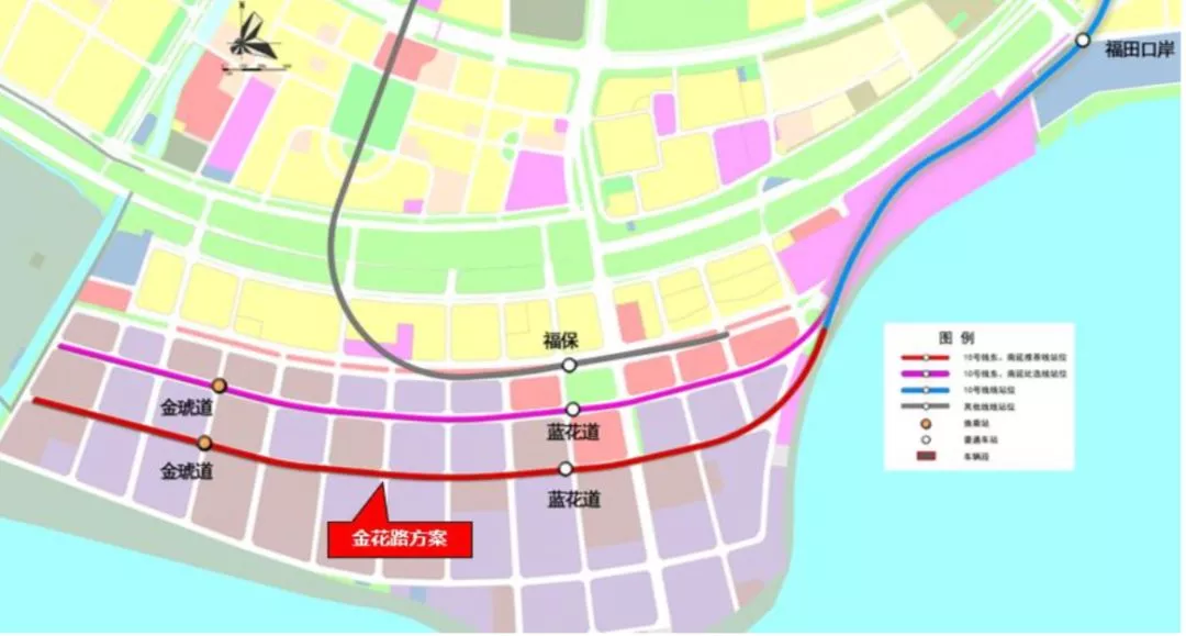 10號線南延線路起自在建10號線福田口岸站,向西南敷設(shè),以金花路和金葵路交叉口為終點。線路全長約3.0公里,采用地下敷設(shè)。