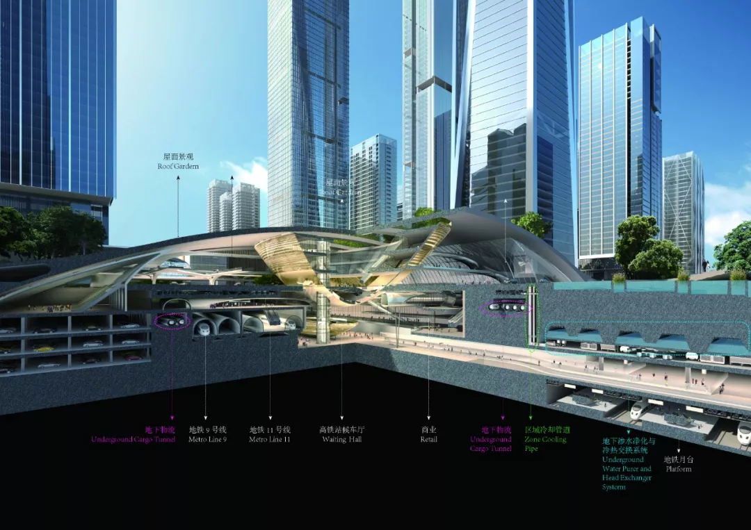 東西向的公共文化軸是本方案的亮點與創(chuàng)新,它不但增加了充滿活力的片區(qū)“東門戶”,與歡樂海岸互動融合,更重要的是它首次將“共享、交互”的概念以具有張力的結(jié)構(gòu)性元素詮釋在深超總功能布局之中,豐富了深超總基地的空間形態(tài),也增加了對深超總活力層次的想象力。