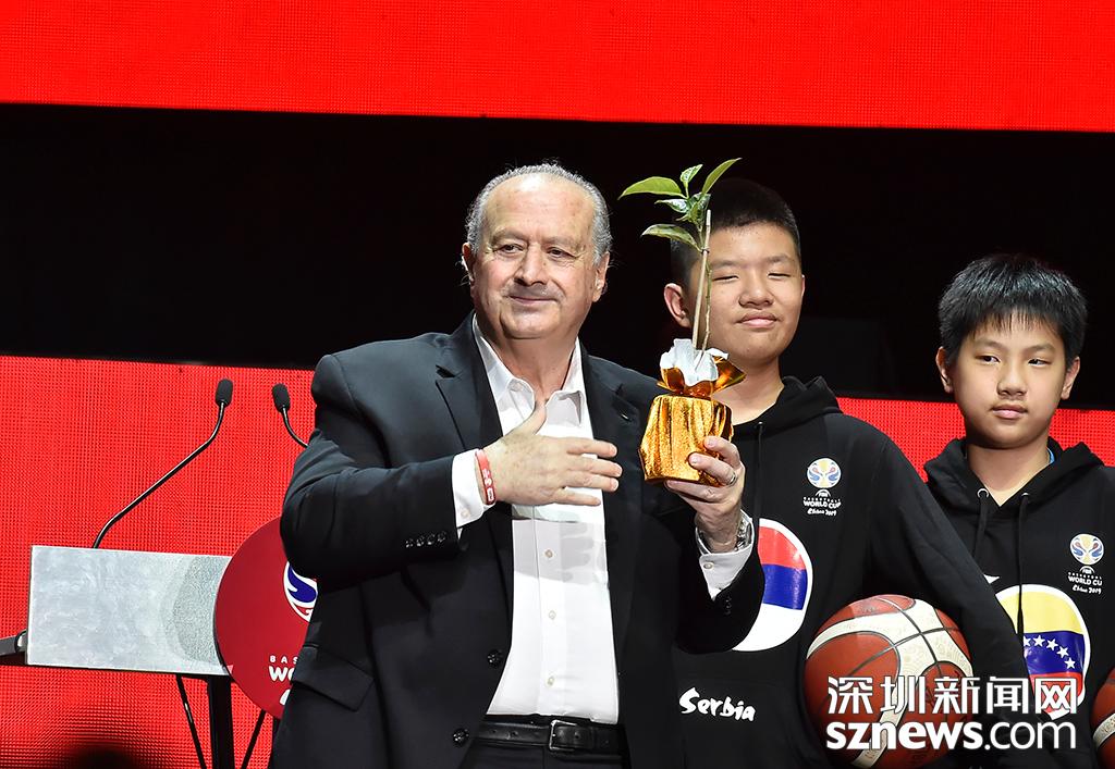 國際籃聯主席霍拉西奧·穆拉托雷在活動中被贈予盆栽