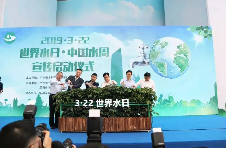 現(xiàn)場領(lǐng)導(dǎo)用取自于深圳灣體育中心大樹廣場收集回用的雨水,共同澆灌象征著綠色、希望的生命之樹,來正式啟動(dòng)“世界水日”“中國水周”宣傳活動(dòng)!