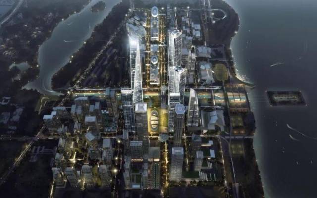 該方案中規(guī)劃了國際交流會議中心、城市演藝中心、城市博物館及雙子金融大廈等,以及地景式過街天橋、中央綠谷公園等。