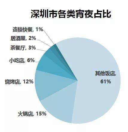 在深圳夜宵市場中,有超過6成的比例為經營至深夜的飯店,火鍋和燒烤次之。