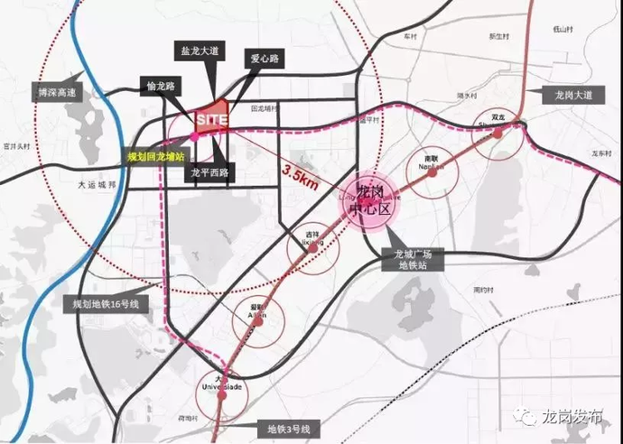 無縫接駁地鐵16號線回龍埔站,直通坪山、深惠邊界,預計2022年開通;