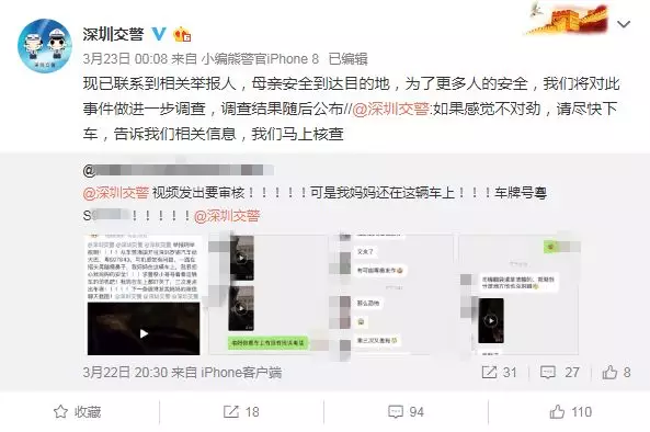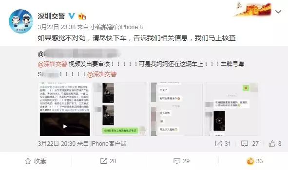 為了確保車(chē)內(nèi)乘客安全,深圳交警與舉報(bào)人進(jìn)行聯(lián)系,與此同時(shí)迅速掌握車(chē)輛及駕駛?cè)诵畔ⅲ?/span>對(duì)車(chē)輛駕駛情況展開(kāi)調(diào)查持續(xù)關(guān)注車(chē)輛動(dòng)態(tài)。