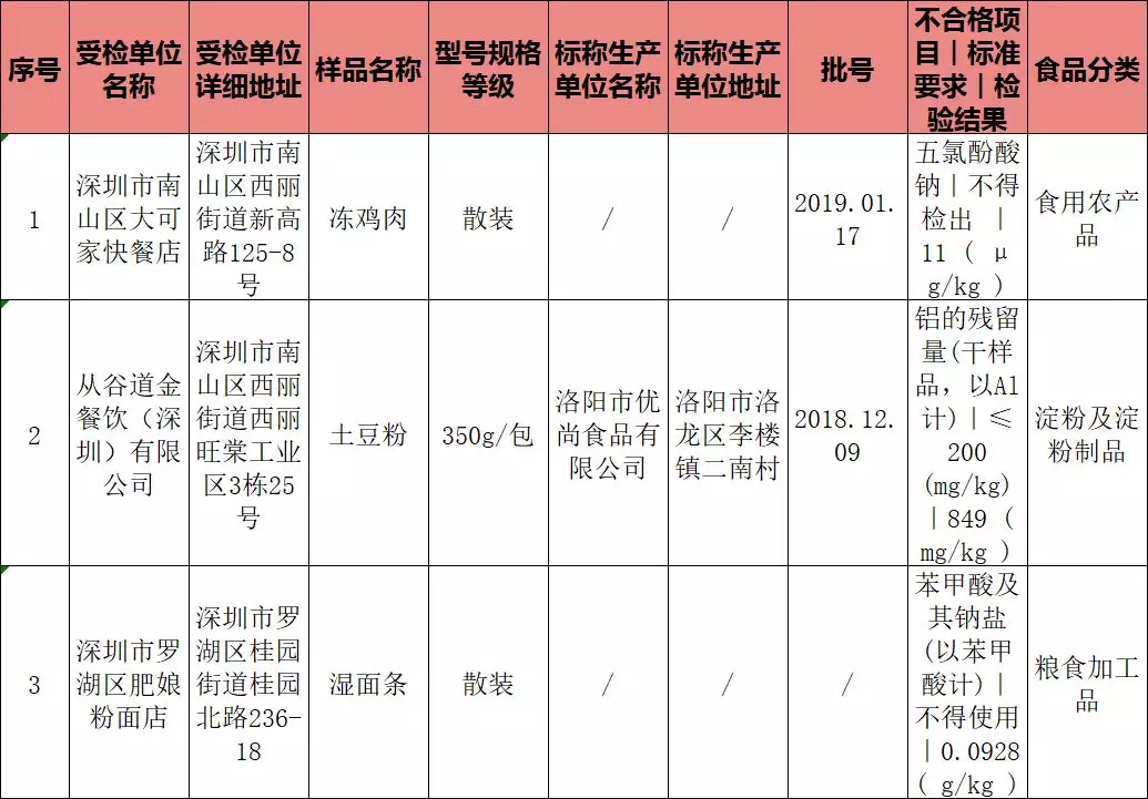 在不合格表單中,食安君一眼就看到了凍雞肉!這批次不合格凍雞肉出自深圳市南山區(qū)西麗街道的大可家快餐店,不合格項目是五氯酚酸鈉(不得檢出 )