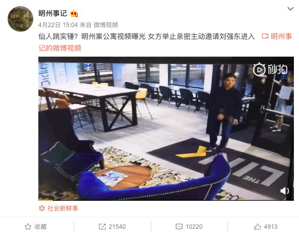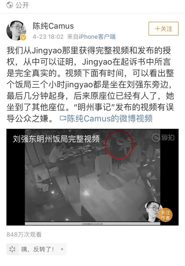 就在人們以為事件就此平息的時候,又爆出一系列和該案有關(guān)的料。首先是本案當(dāng)事人LIUJINGYAO宣布起訴京東集團(tuán)及劉強(qiáng)東。4月22日、23日微博上爆出監(jiān)控視頻以及劉強(qiáng)東美國律師和LIUJINGYAO之間電話談話的錄音。