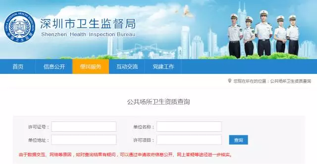 通過(guò)深圳市衛(wèi)生監(jiān)督局官方網(wǎng)站,可查詢?cè)撋蠲廊輬?chǎng)所是否取得衛(wèi)生許可證。