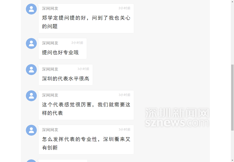 大講堂期間,網(wǎng)友涌入直播頁面以留言的方式對深圳市人大代表大講堂貼近民生的選題表示肯定,不少人大贊深圳市人大代表臥虎藏龍,不光主講嘉賓朱聞博有能力,提問的四個(gè)代表(李繼朝、鄭學(xué)定、肖幼美、黃翔)也非常有水平,問到了點(diǎn)子上,“希望代表和專家碰撞出火花,讓深圳的明天更美好”。