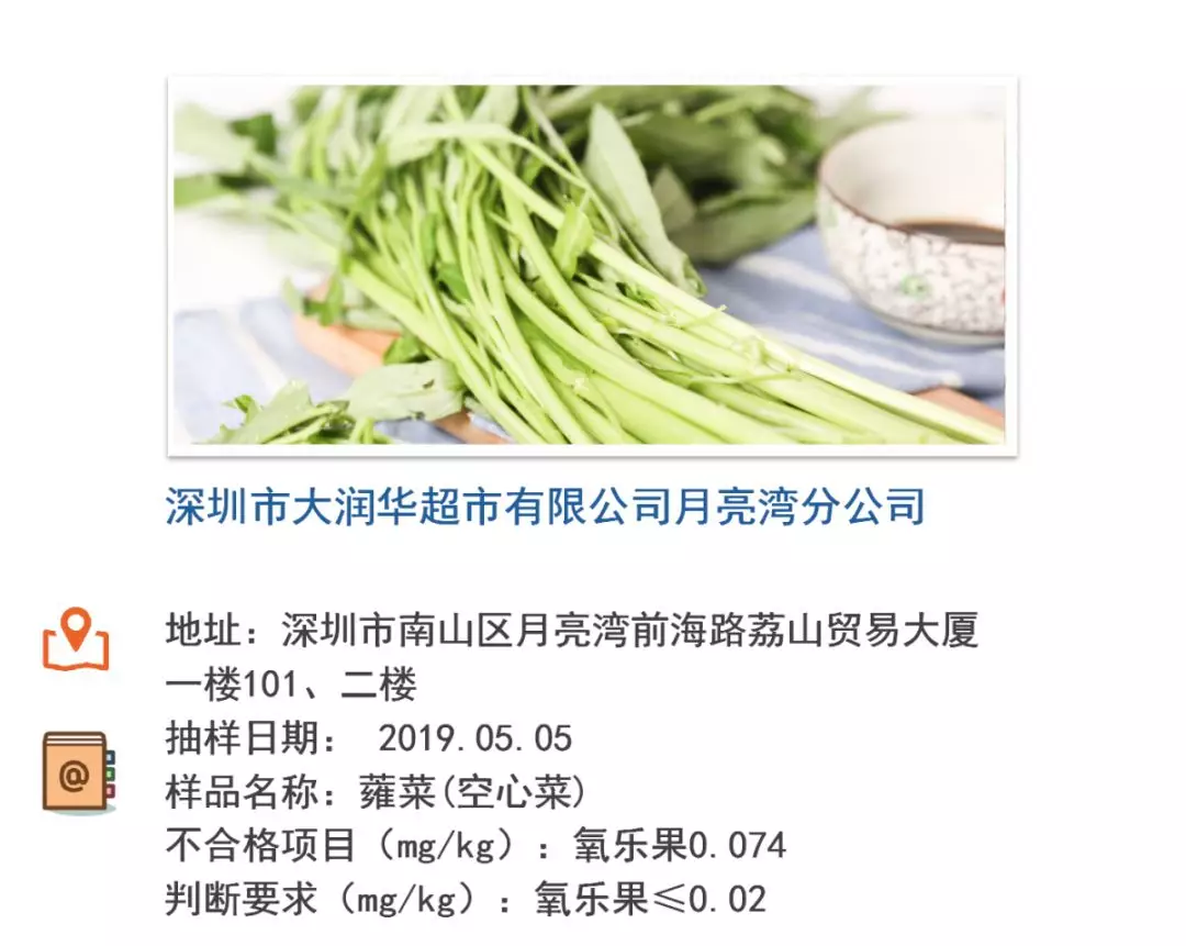 蔬菜有1份抽樣樣品不合格!