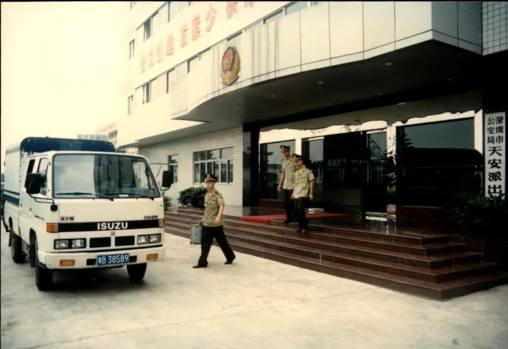 “天安派出所轄區(qū)范圍比較狹長,那時的濱海大道還未通,深南大道就是東西貫穿的主干道,以前治安、交通都不好,老百姓出行靠中巴,因此中巴上的盜搶事件屢有發(fā)生。為了打擊,我們經(jīng)常在路面打伏擊,甚至從深南大道東邊上車一路跟著到西邊,路上遇到搶劫的就下來抓?!睏罱鸩ɑ叵胪碌馈?/p>