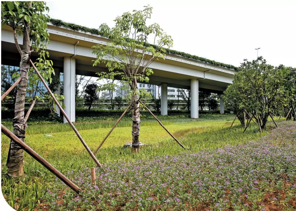 燕羅街道采用生態(tài)式種植模式,以“兩軸、四帶、四片、四面”為設(shè)計(jì)思路,通過增加樹形優(yōu)美的“大樹+地景形式”打造重要節(jié)點(diǎn),將喬、灌、草等不同植物交錯(cuò)種植,搭配疏密有別、宛如千姿百態(tài)的生態(tài)景觀長(zhǎng)廊,“驚艷”展現(xiàn)在途經(jīng)市民眼前。