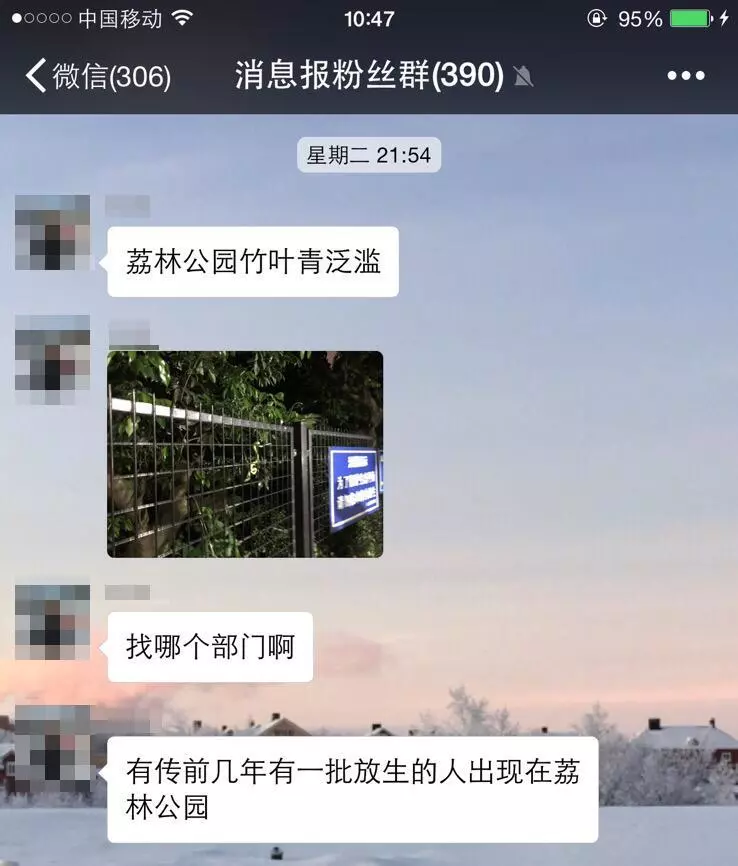 ▲消息報(bào)粉絲在群里報(bào)料,荔林公園有蛇出沒。