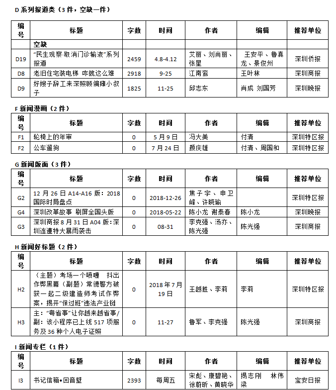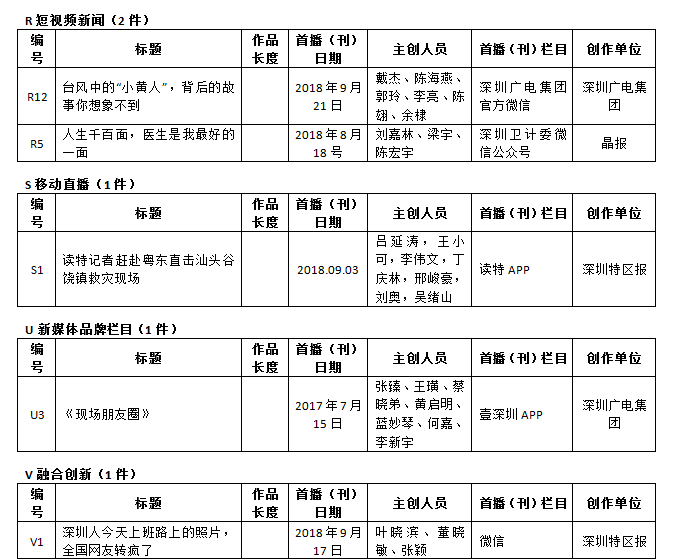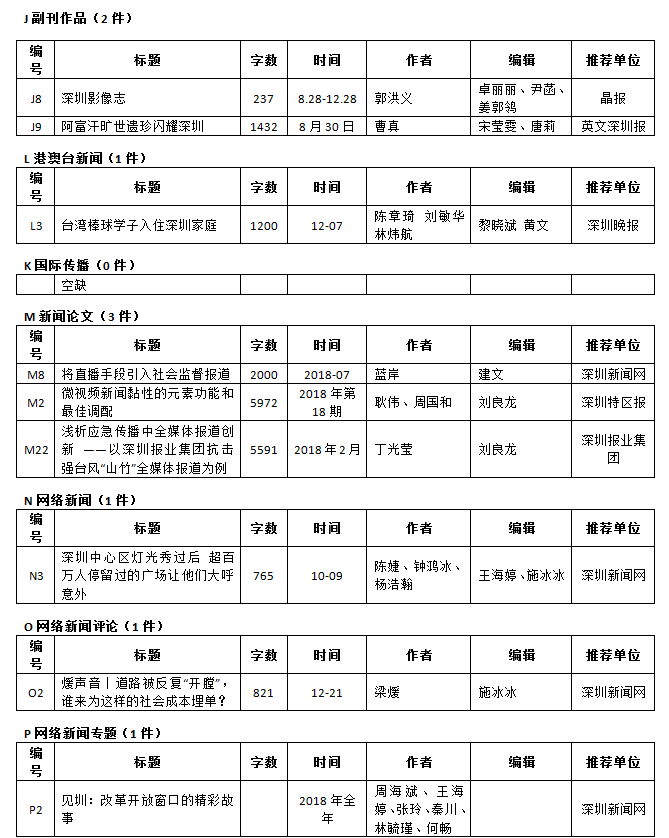 第26屆(2018年度)深圳新聞獎獲獎作品目錄