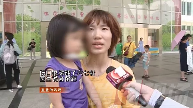 同樣遭遇意外的,還有三歲半的小女孩藍(lán)藍(lán),她的下巴被包扎了起來,病例里寫著:她的下巴里面有一條3厘米長,0.5厘米深的傷口。那么,藍(lán)藍(lán)又是怎么受傷的呢?