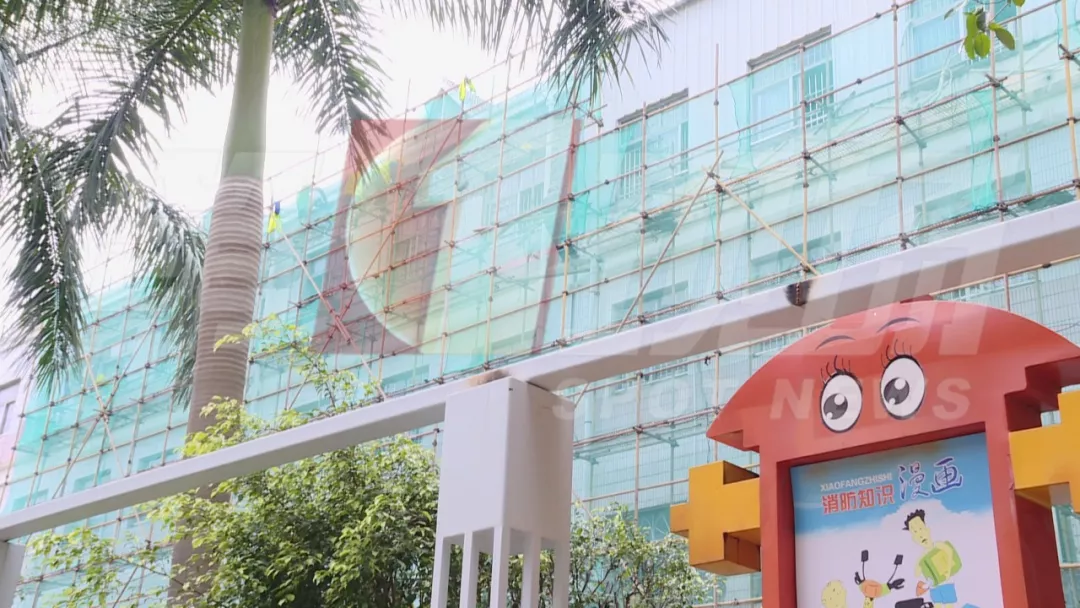 工人卻在教學樓進行外墻施工