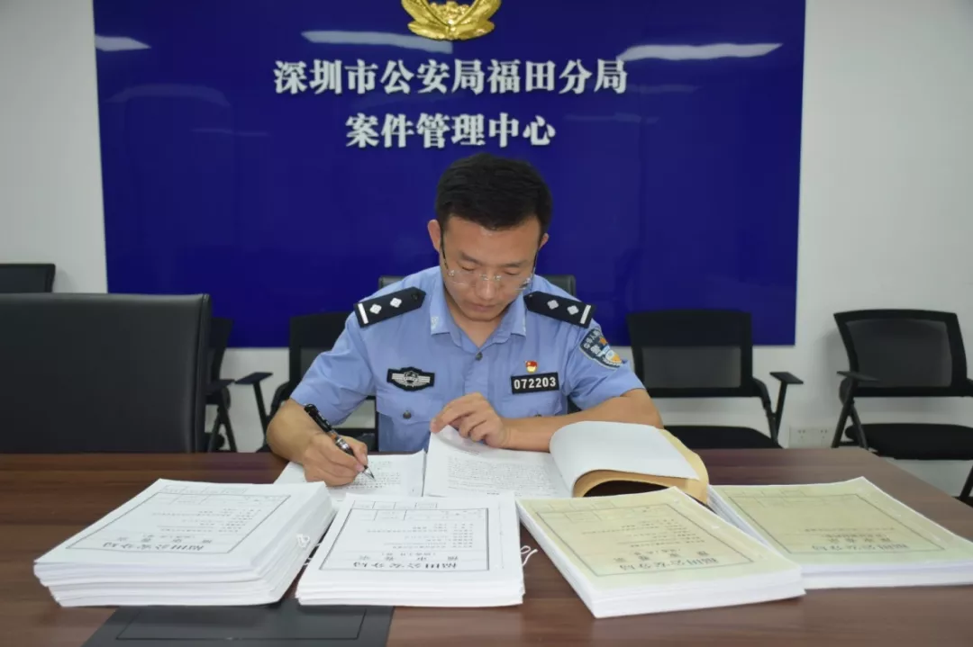 24小時(shí)值班后再繼續(xù)加班是靳鵬的工作常態(tài),他馬不停蹄地趕往出入境大隊(duì)參加會(huì)議。會(huì)議結(jié)束,靳鵬并沒(méi)有離開(kāi),而是將卷宗按順序鋪好,開(kāi)始了他的工作——查看證據(jù)收集情況和提供法律支撐。150頁(yè)A4大小的卷宗裝訂成冊(cè),足足4大本,靳鵬邊看邊拿著筆“刷刷刷”地在紙上做記錄。