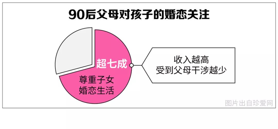 90后的婚戀觀發(fā)生著變化,他們的父母對此又有怎樣的反應(yīng)呢?調(diào)查顯示,超7成父母選擇尊重子女的婚戀生活;子女收入越高,在婚戀選擇方面受到父母干預(yù)越少,這也證明經(jīng)濟(jì)獨立,可以讓單身男女在婚姻方面有更多的話語權(quán)。
