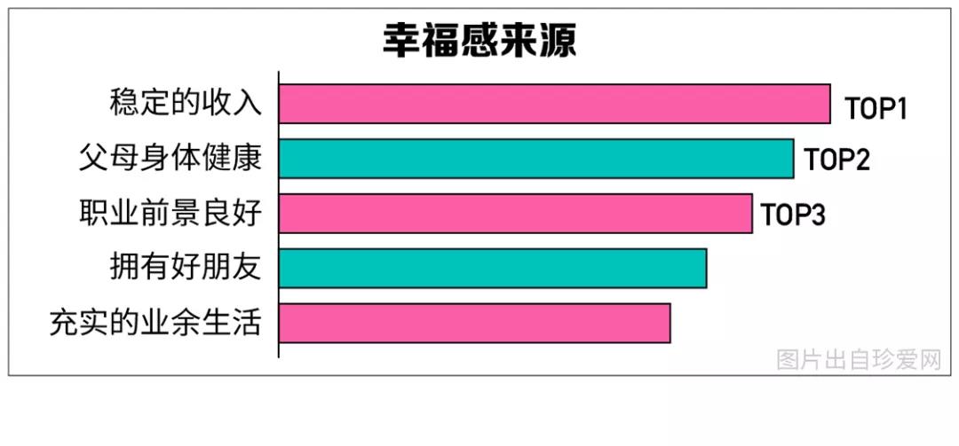 深入研究發(fā)現(xiàn),男性對“擁有心儀對象”的需求比例(6.67%)略高于女性(3.17%),女性則是在擁有要好朋友的比例(28.79%)上高于男性(6.67%),且因為穩(wěn)定收入感到幸福的女性比例(60%)比男性(53%)更高??梢?,女性更容易從穩(wěn)定的收入中獲得幸福感。