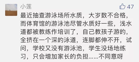 為何將游泳納入必選項(xiàng)?廣東省南粵優(yōu)秀教師、深圳市教學(xué)名師劉晉長(zhǎng)期關(guān)注深圳中小學(xué)體育教學(xué)研究,退休前曾是深圳市教科院體育教研員。據(jù)其分析,廣東省開(kāi)放性水域面廣,學(xué)生溺水事故時(shí)有發(fā)生。避免溺水最好的辦法就是學(xué)會(huì)游泳,將游泳納入體育中考必考選項(xiàng),非常有必要。不僅如此,游泳還對(duì)青少年心肺功能、身體發(fā)育、意志力培養(yǎng)等都有很好的鍛煉,在中小學(xué)普及游泳值得贊同。