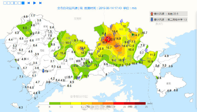風力逐漸減弱,深圳市氣象臺于2019年08月14日17時15分在南山區(qū),西部海區(qū)和寶安區(qū)(新安、福海、福永、西鄉(xiāng)、航城街道)取消大風藍色預(yù)警。