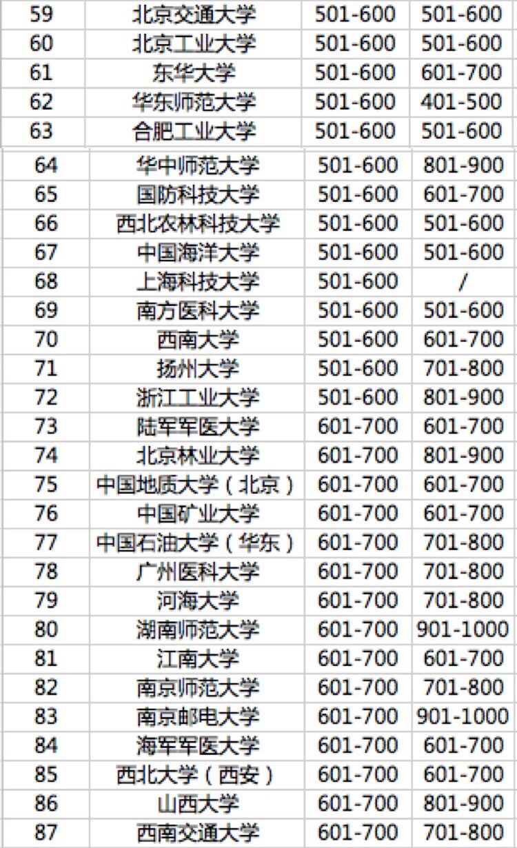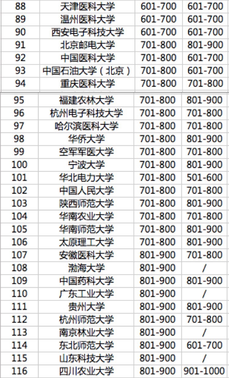 清華大學(xué)在中國內(nèi)地排名最高,位列全球第43名。上海交通大學(xué)的進(jìn)步尤其引人注目,今年首次躋身全球百強(qiáng),位列全球第82位,上海交通大學(xué)也成為繼清華大學(xué)、北京大學(xué)和浙江大學(xué)之后進(jìn)入全球百強(qiáng)的第四所中國大學(xué)。復(fù)旦大學(xué)、華中科技大學(xué)、中山大學(xué)和中國科學(xué)技術(shù)大學(xué)排在全球101-150名。中南大學(xué)、蘇州大學(xué)、東南大學(xué)、電子科技大學(xué)和武漢大學(xué)首次進(jìn)入世界200強(qiáng)。南開大學(xué)、山東大學(xué)、同濟(jì)大學(xué)首次進(jìn)入世界300強(qiáng)。深圳大學(xué)、南方科技大學(xué)、青島大學(xué)、福州大學(xué)、鄭州大學(xué)、南昌大學(xué)、江蘇大學(xué)、暨南大學(xué)今年首次入圍全球500強(qiáng)。上海科技大學(xué)、廣東工業(yè)大學(xué)等13所大學(xué)首次進(jìn)入全球1000強(qiáng)。