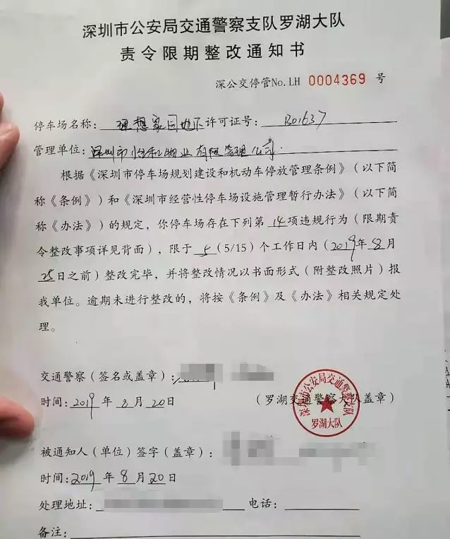 深圳交警巡查至深圳市怡和物業(yè)有限管理公司理想家園地下停車(chē)場(chǎng)時(shí),發(fā)現(xiàn)該停車(chē)場(chǎng)數(shù)據(jù)未與停車(chē)場(chǎng)監(jiān)管系統(tǒng)正常連接,民警按照停車(chē)場(chǎng)管理制度向該停車(chē)場(chǎng)負(fù)責(zé)人開(kāi)具責(zé)令限期整改通知書(shū)。