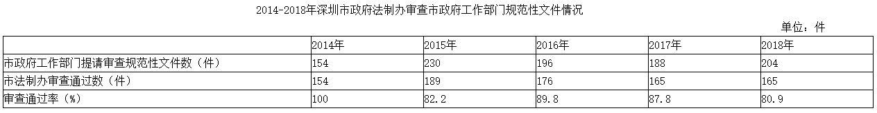 2014-2018年深圳市政府法制辦審查市政府工作部門(mén)規(guī)范性文件情況