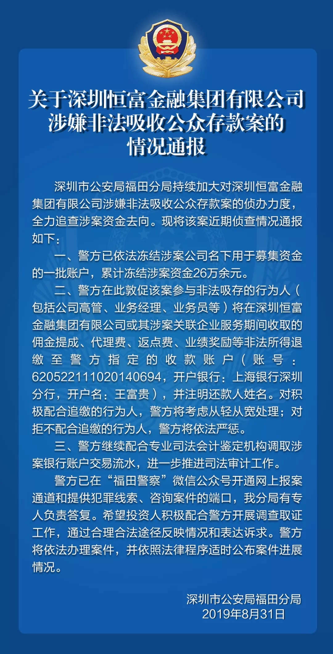 關(guān)于深圳恒富金融集團、“小微金融”等平臺的案情通報